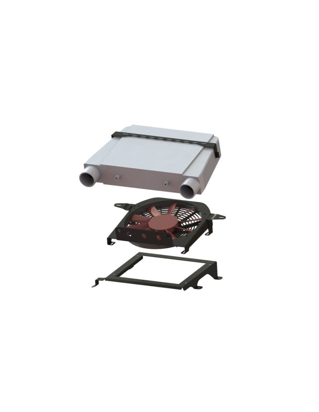 Felső rögzítésű intercooler konzol készlet 330x280x76 ventilátorral, Nissan Patrol Y61 BMW M57 3.0d D2, D3 motorokhoz tervezve. A megfelelő beszereléshez meg kell növelni a motorháztető légbeömlőjét.