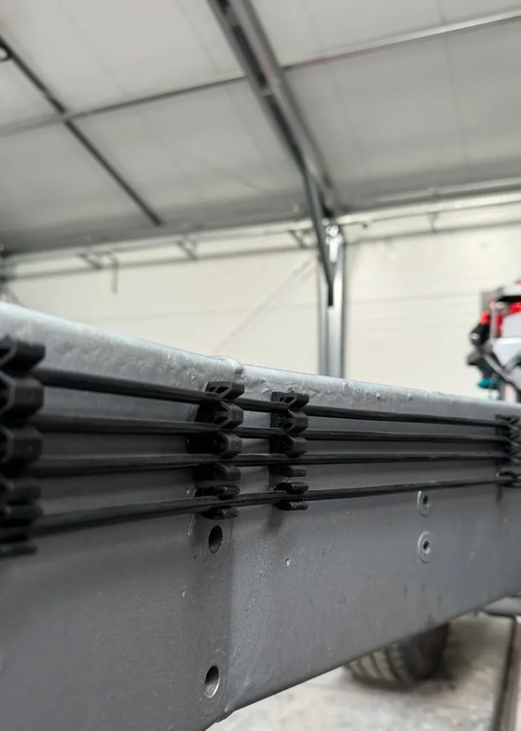Komplett rögzítőkészlet, amely lehetővé teszi a vezetékek (pl. fék, üzemanyag) biztonságos és esztétikus elrendezését az alváz mentén.